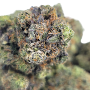 Killer Queen buds showcase vibrant green hues with striking purple tinges, creating a visually captivating appearance. Each bud is densely packed and generously coated with glistening trichomes, signaling its potent nature. Their sticky, resinous texture is ideal for connoisseurs looking for quality and effectiveness.